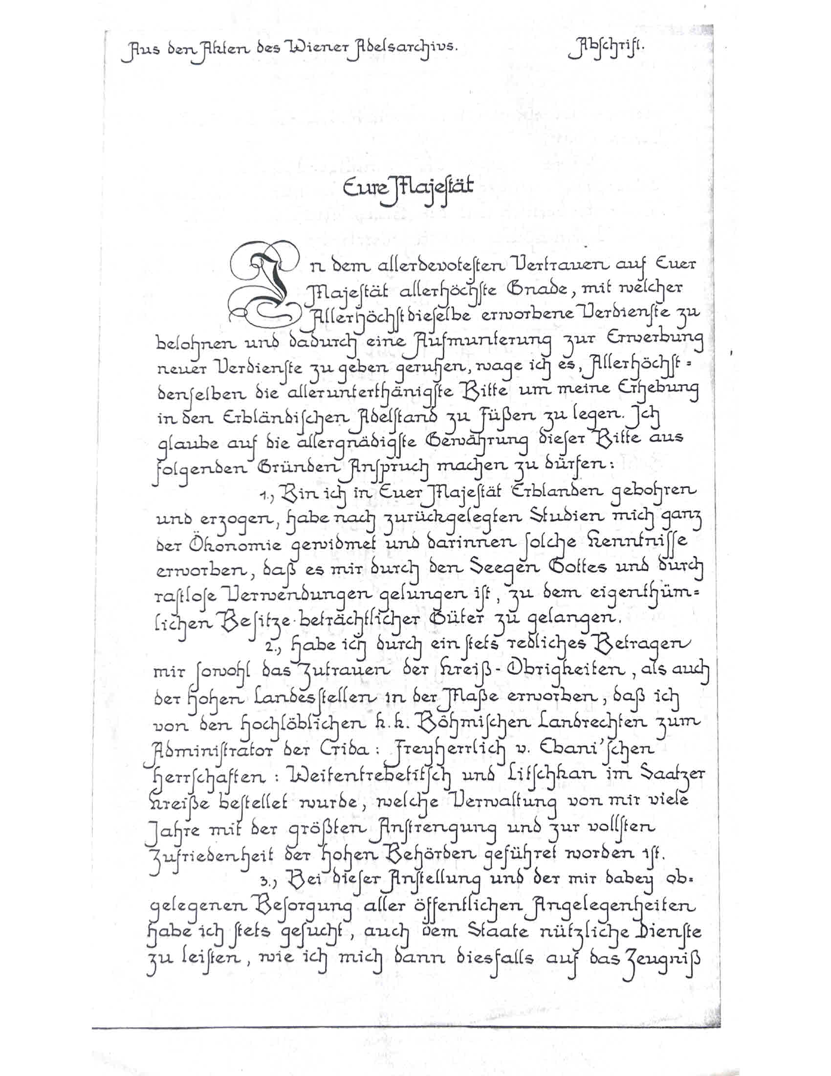 allerunterthänischte Bitte um meine Erhebung in den Erbländischen