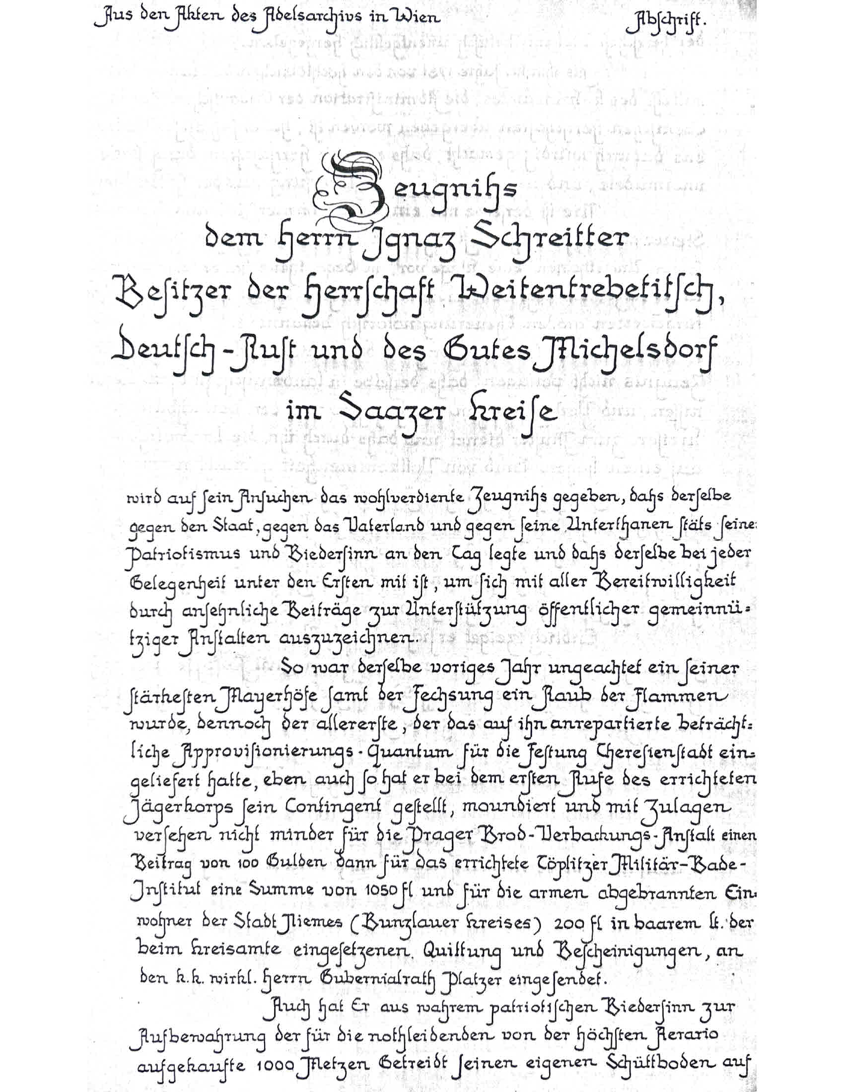 Herrschaft Weitentrebetitsch unentgeltlich hergegeben.